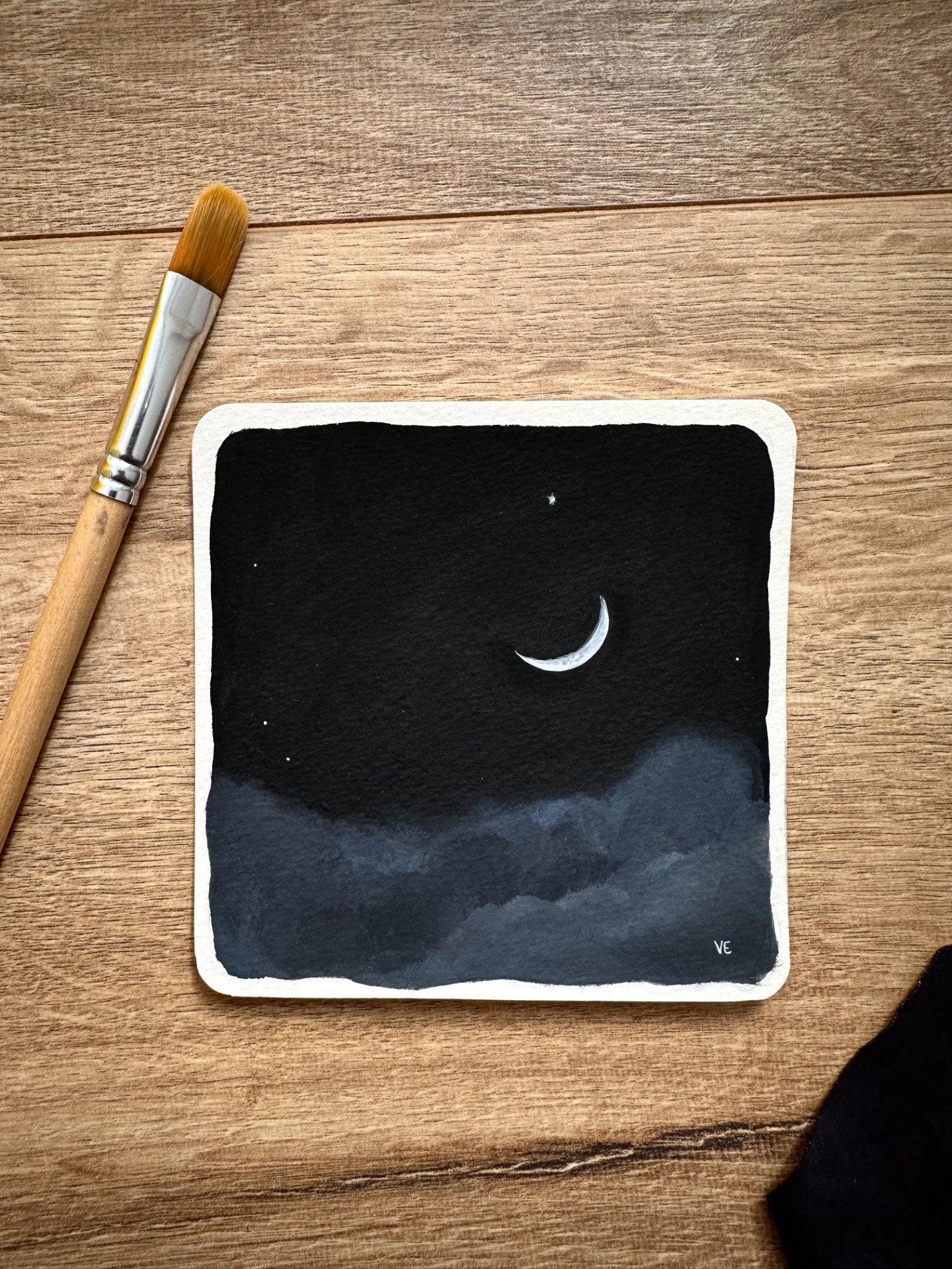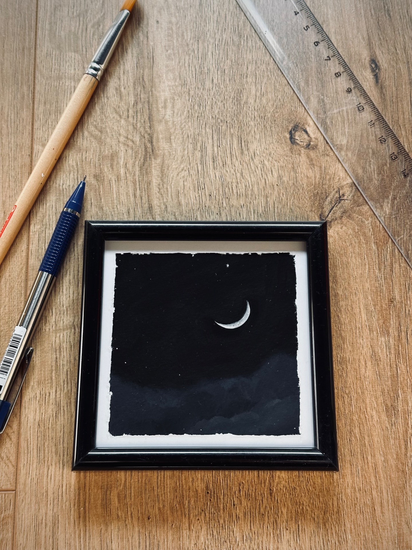 Gouache festékkel készült kép. Lakkréteg védi, de nem teljesen vízálló. A keret a képhez jár, az ár tartalmazza.