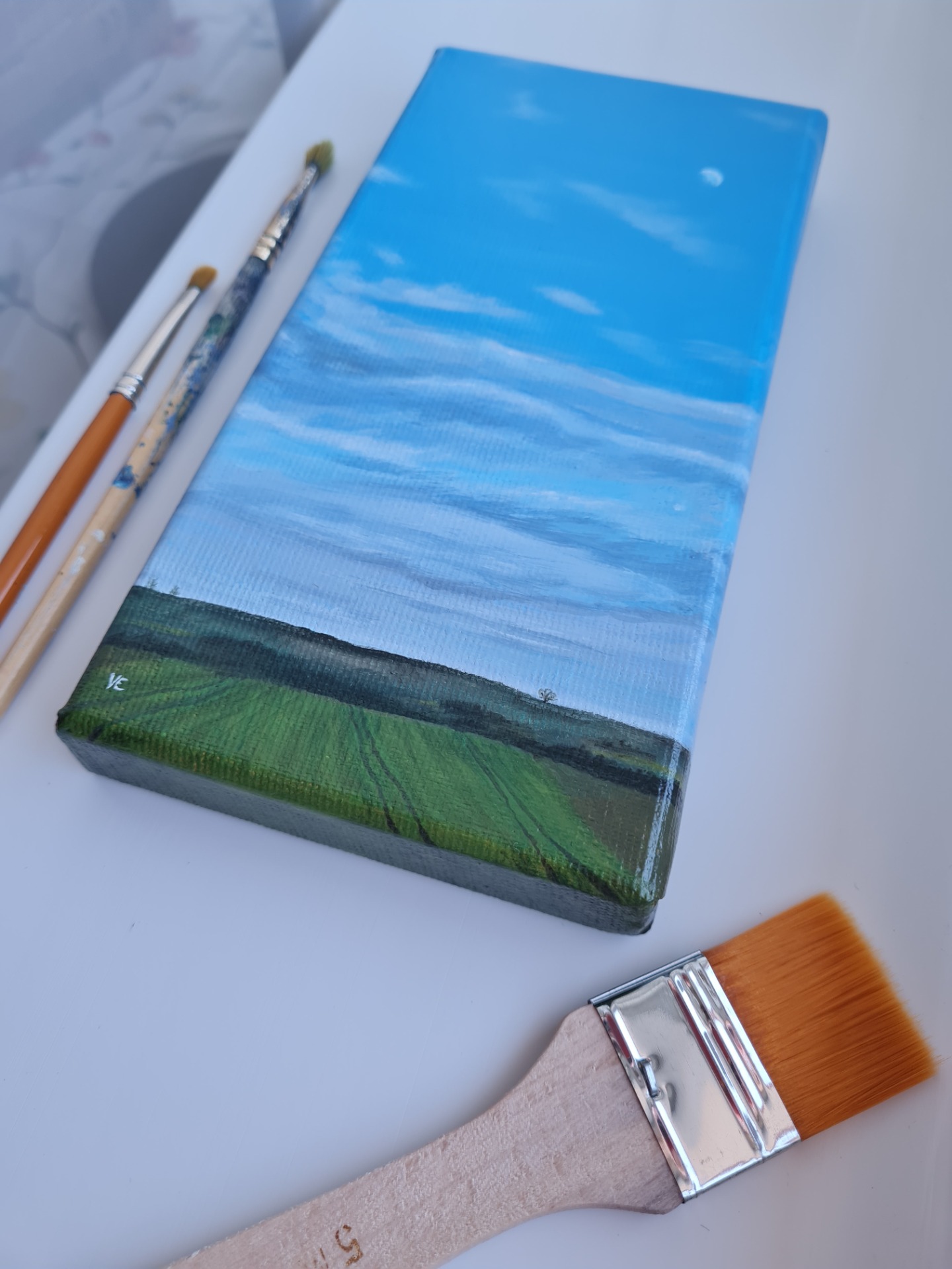 Akril festmény keretre feszített vászonon. Lakkréteg védi a felületét.