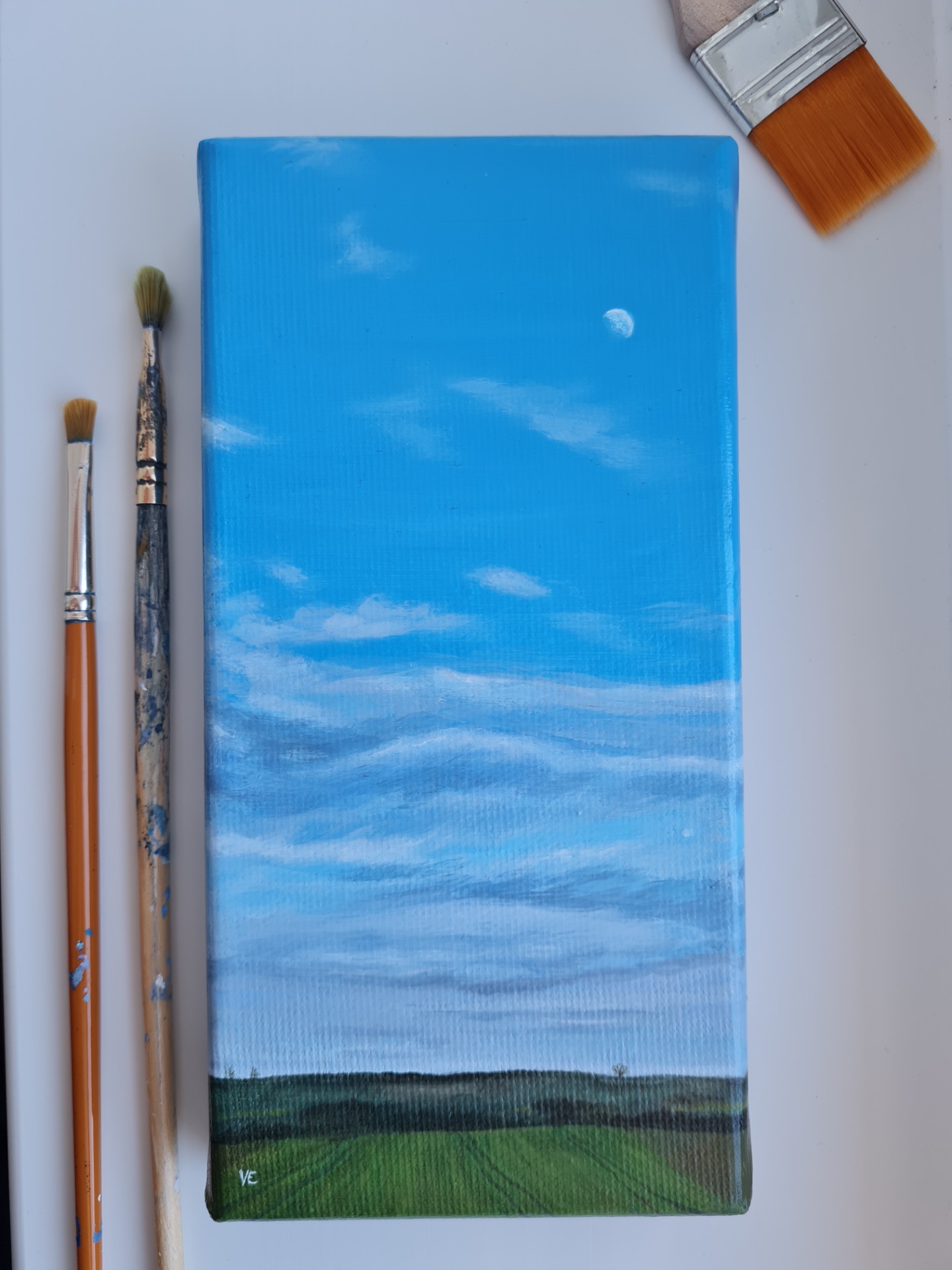 Csak egy egyszerű délután egy hétköznapi helyszínen. A hold sem volt különlegesen keskeny, vagy telt, és a felhők is szabálytalanul kavarogtak. Mégis, egyszerűen szép volt, tökéletlenül, szabálytalanul, épp úgy, mint mi.