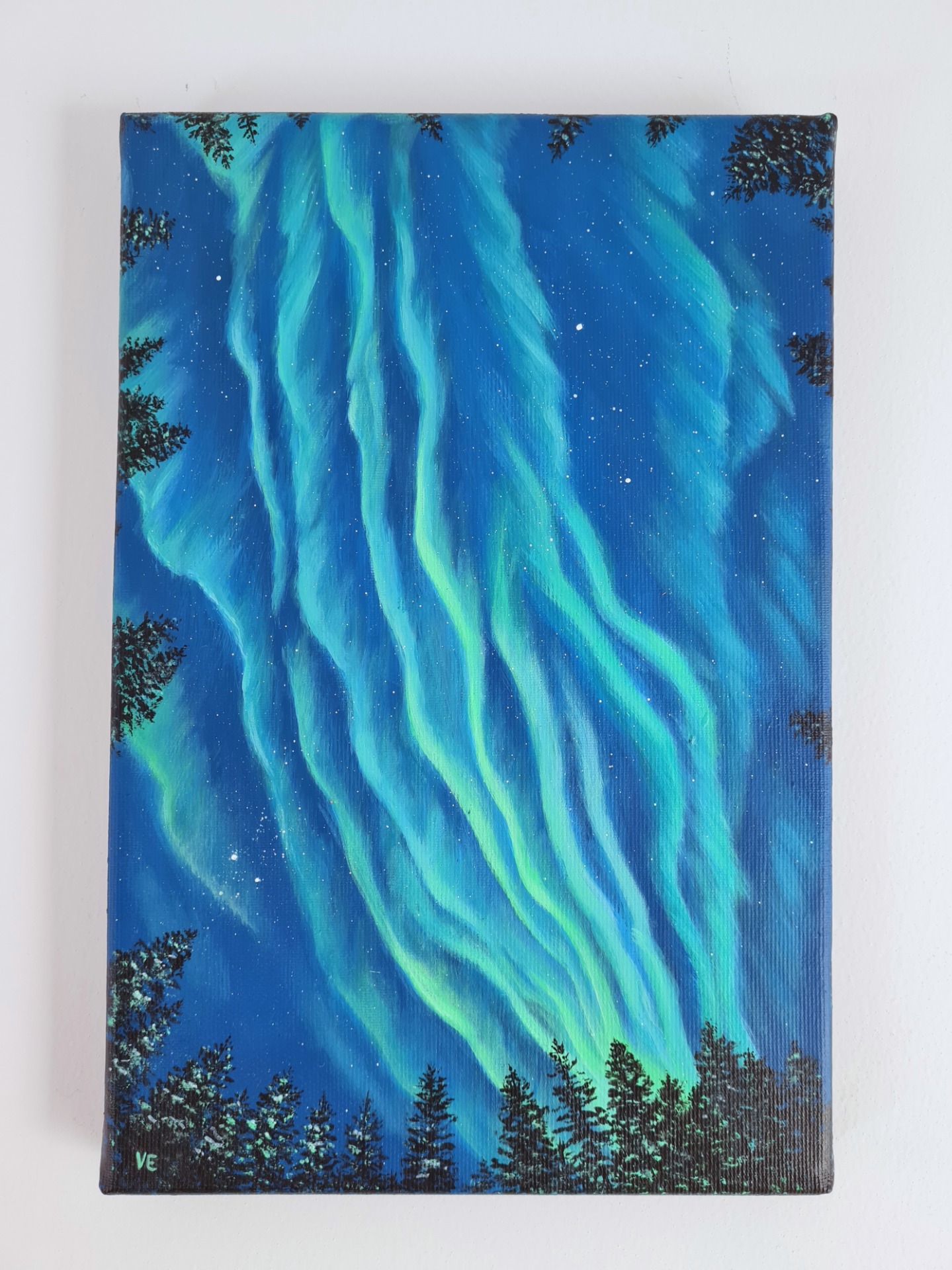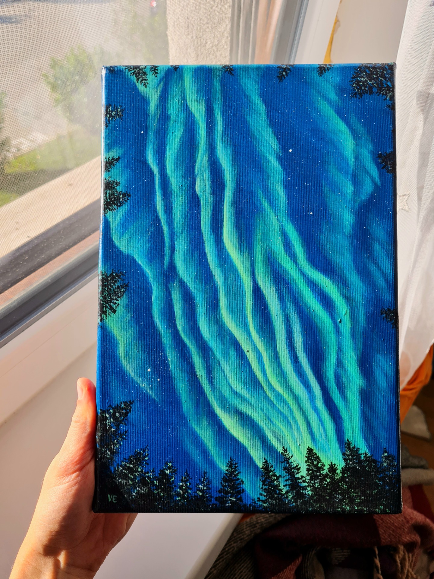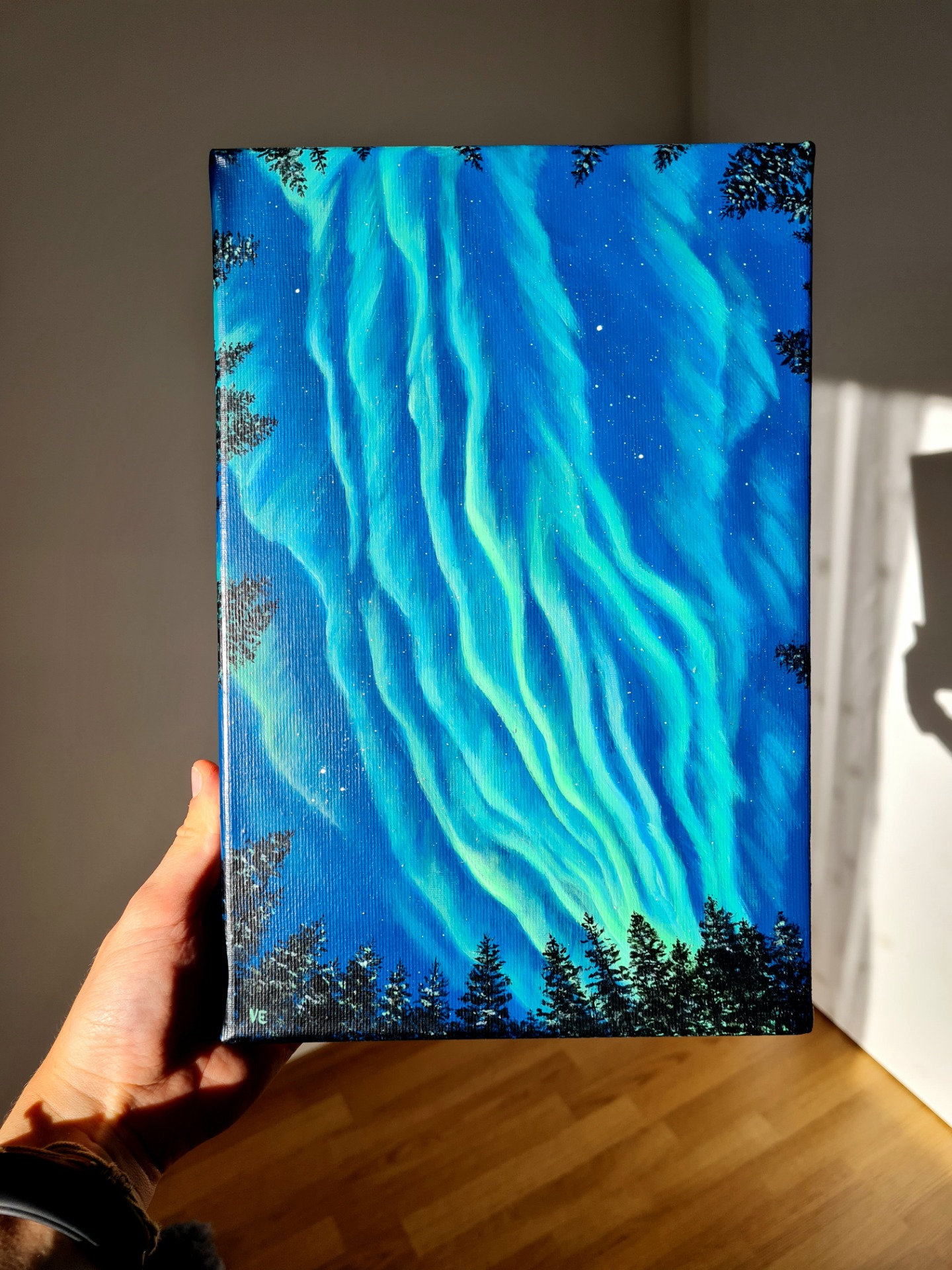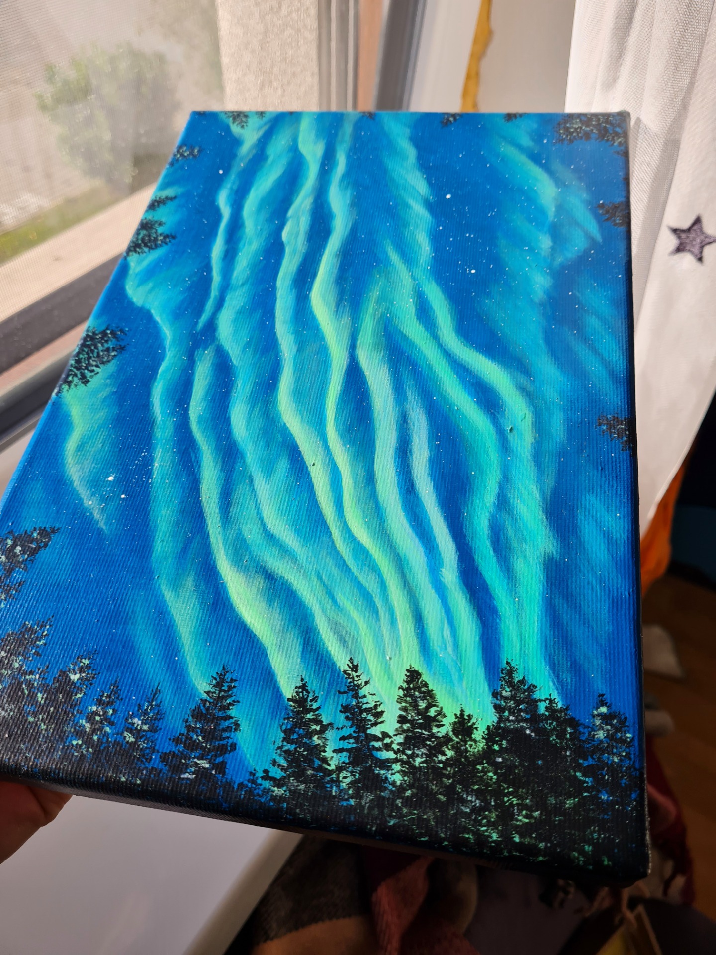 Bartos Erika Tavaszköszöntő című verse ihlette festmény az északi fényről.