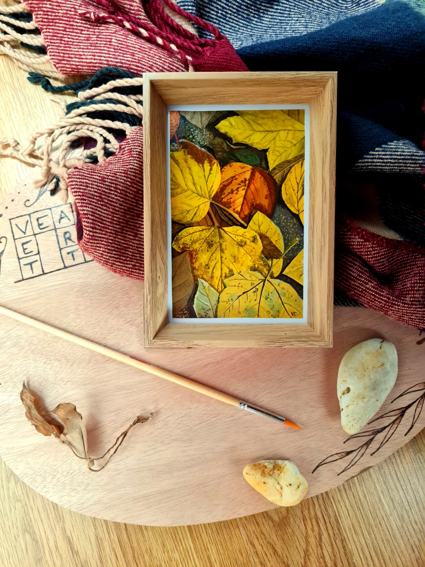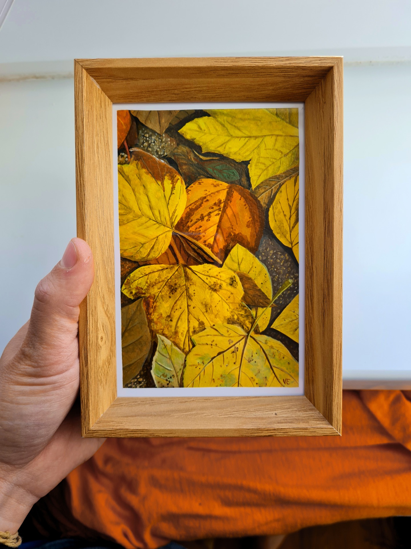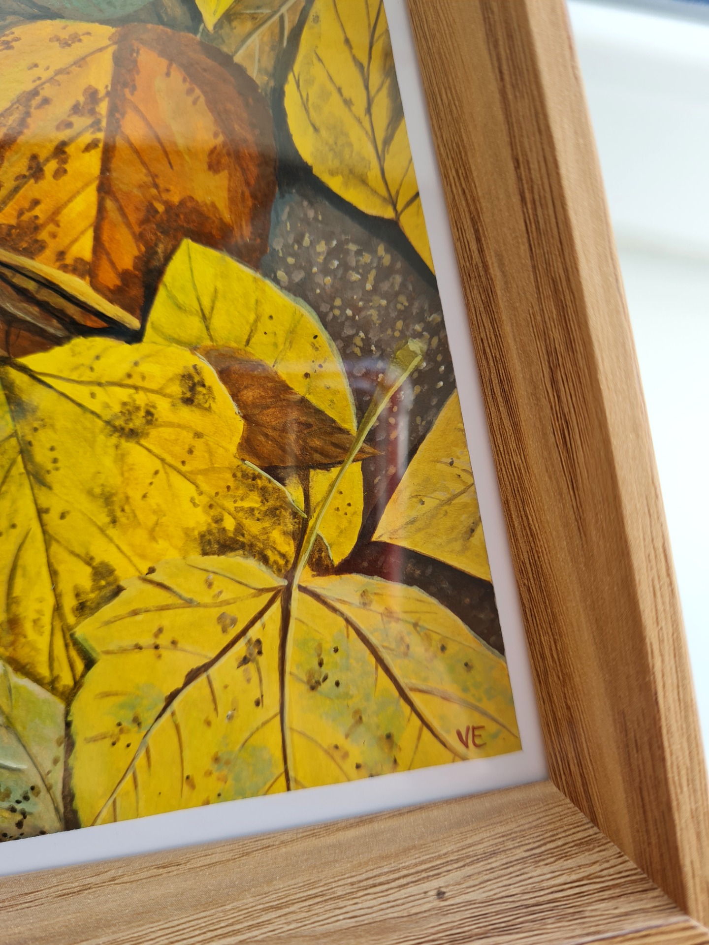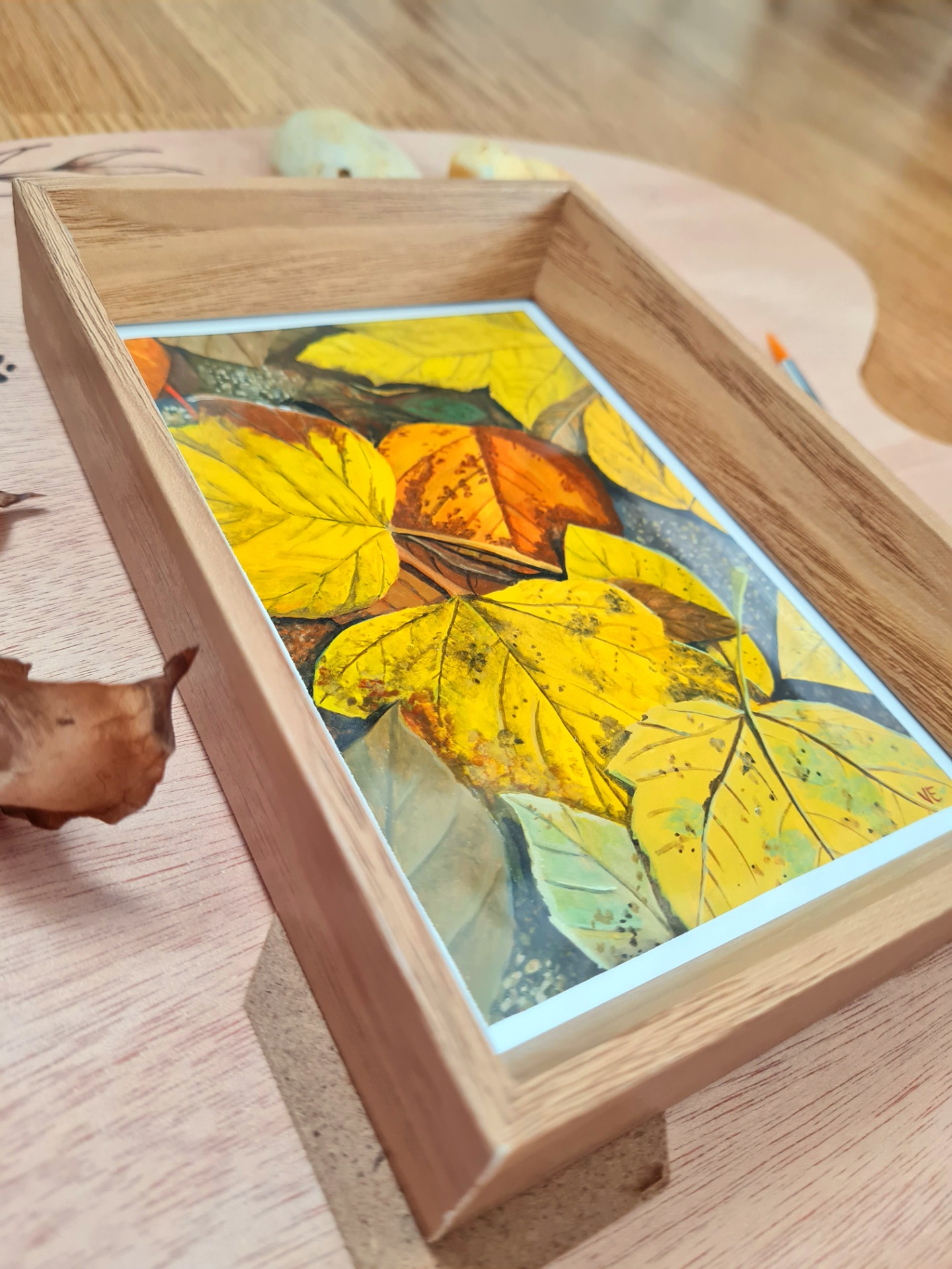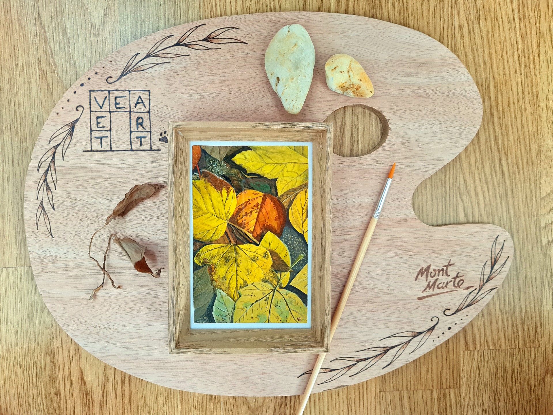 Gouache festékkel készült festmény keretben. Lakkréteg védi, de nem vízálló. A közvetlen napfény hatására megfakulhatnak színei.